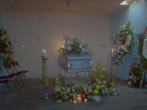 The funeral home came to pitch a tent for the mourners outside the house before they brought the coffin. There are funeral homes and salones de velación (places for the public display of the body) in Moroleón, however the poor still open their home for the viewing and wake, as inconvenient as it may be.