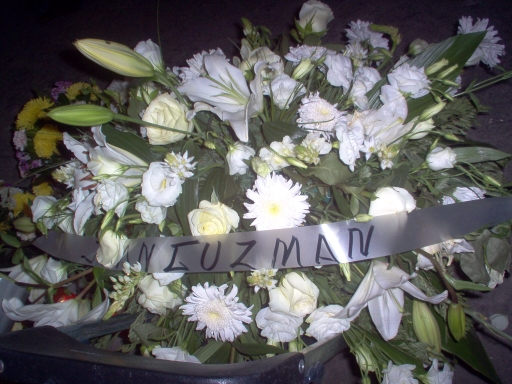 Super Prez also came to the viewing with secretary R and his brother and the community’s lawyer R2. Super Prez sent another corona (wreath) from the colonos de La Yacata.