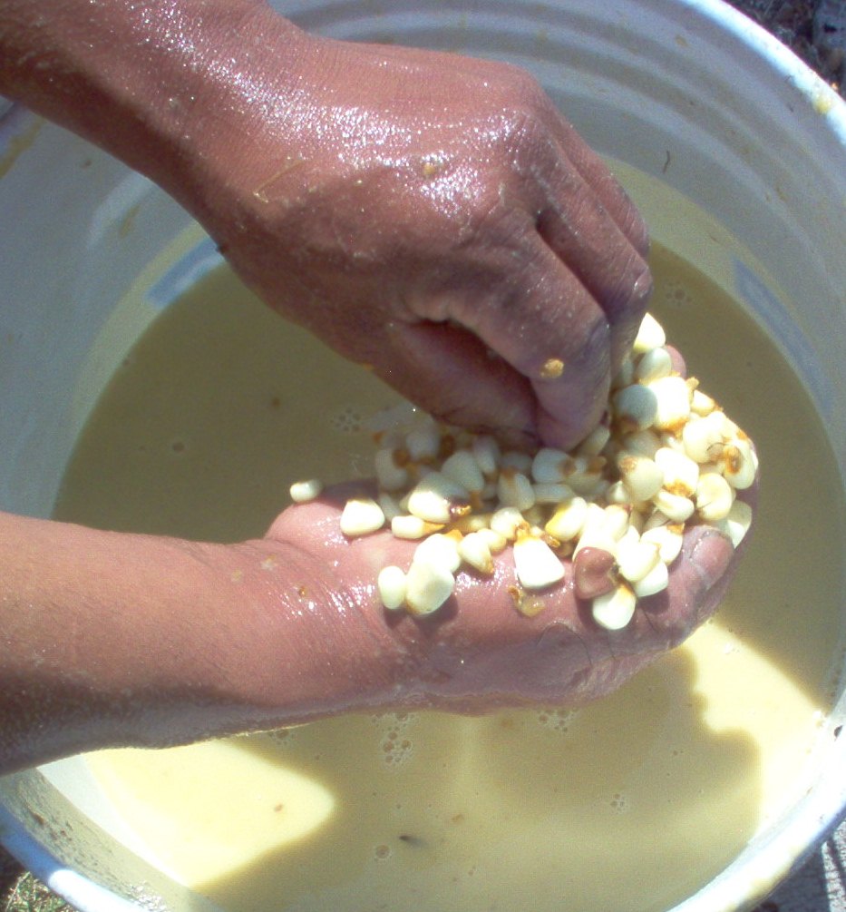 Removing husks.