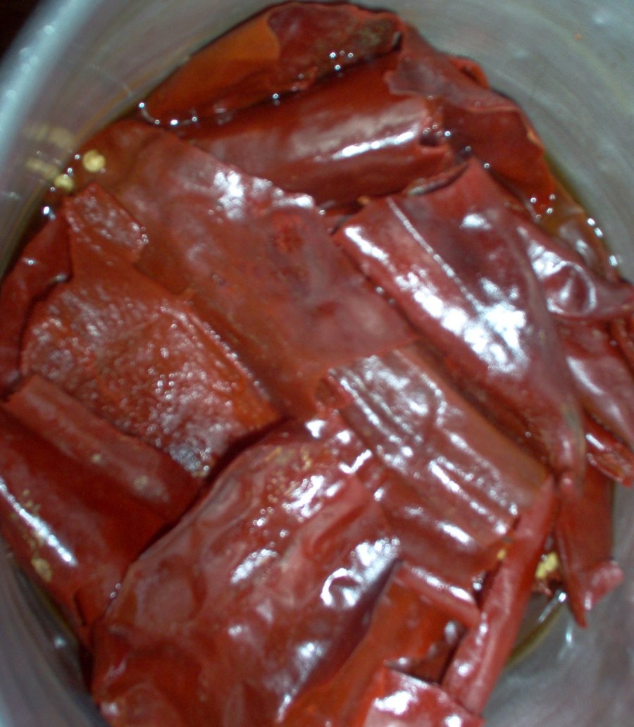 Boiling the devined and deseeded chiles.