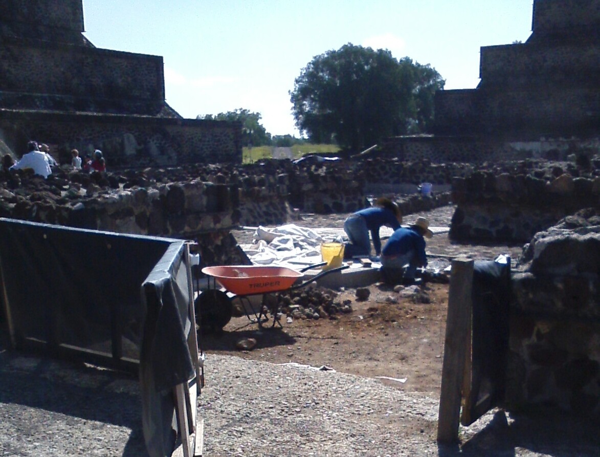Some archeologically digging in front of the Pyramid of the Moon.