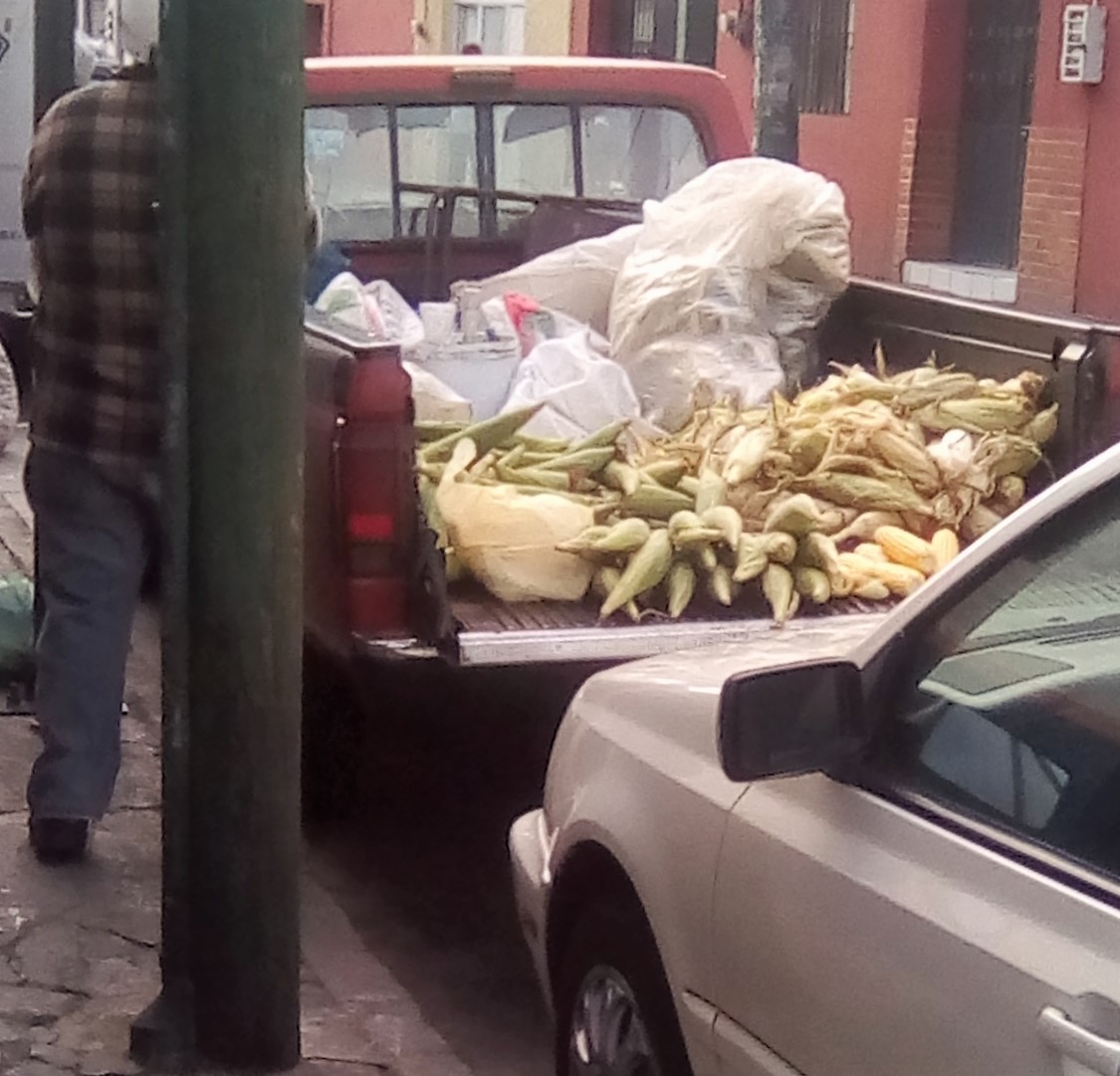 This guy sells elotes (corn) from the back of his truck.