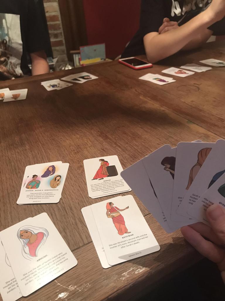 I found a place that will print cards and made a biblical version of “Old Maid” starring Jezabel and a memory game with 20 women mentioned in the Old Testament. Then I had my son translate them and made Spanish versions. He’s quite the translator these days!