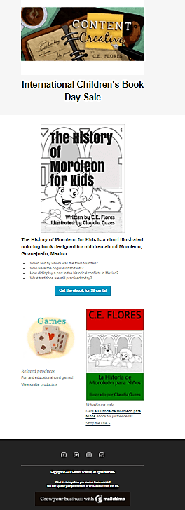 You can see a sample newsletter for International Children’s Book Day below. Both books are still on sale today if you haven’t picked up your copy. You can click on the image to see the newsletter with the links.